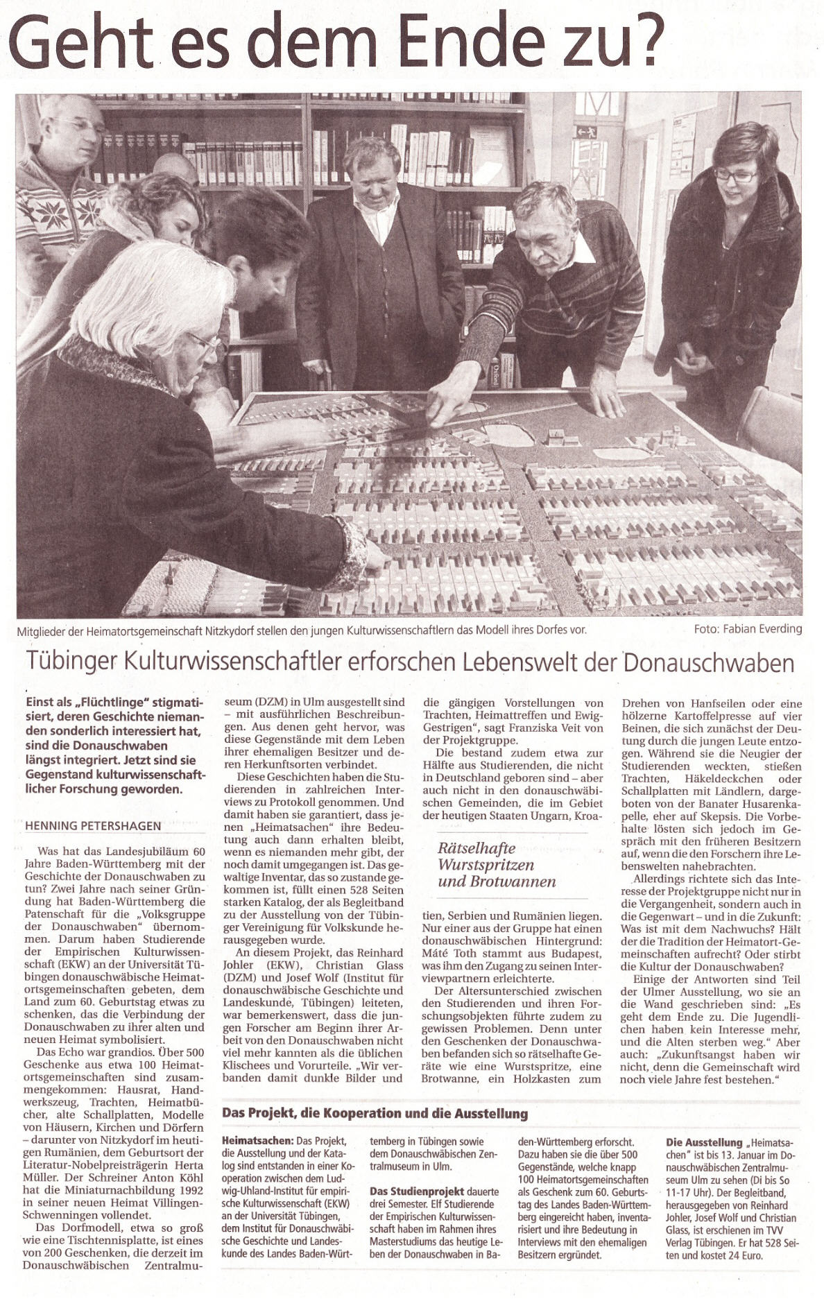 Artikel im Schwäbischen Tagblatt Tübingen am 3.11.2012